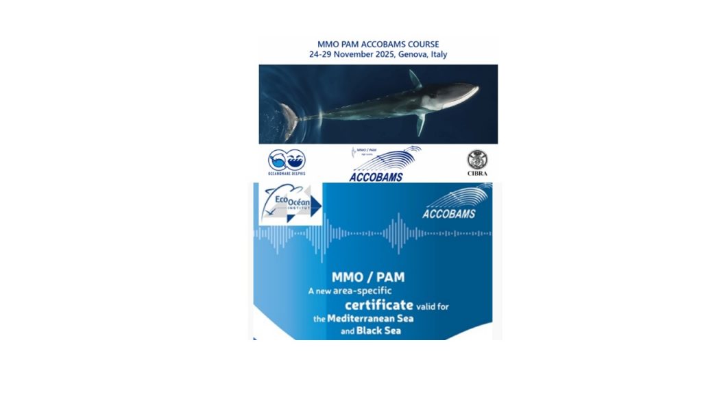 2 upcoming Certifications for ACCOBAMS Highly Qualified MMO/PAM Operators by Medaces · 13/10/2025 Oceanomare Delphis Onlus & CIBRA organise an ACCOBAMS MMO/PAM certification session this year, from November 24 to 29, 2025, in Genoa, Italy. EcoOcean Institute organises an ACCOBAMS MMO/PAM certification session this year, from December 1 to 5, 2025, in Montpellier, France. Share
